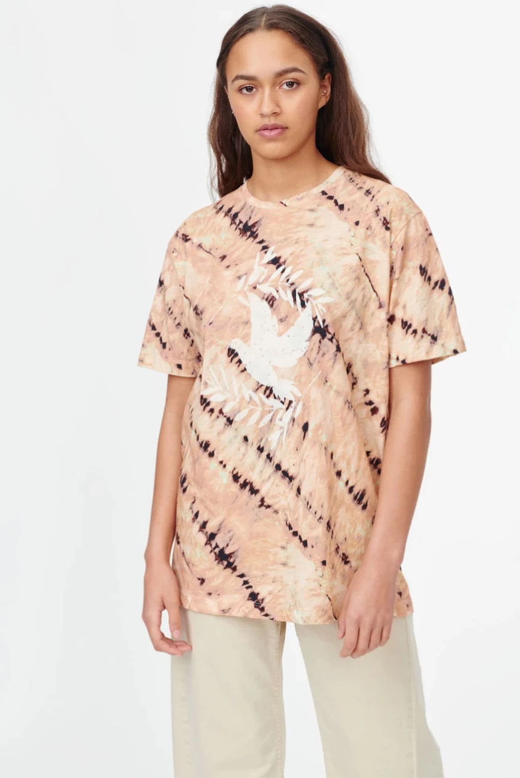 Marshmallow T-shirt in 100% organic cotton in tie-dye and print at the chest.