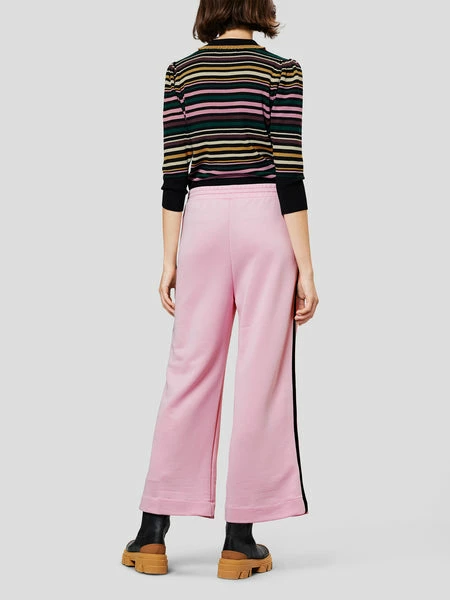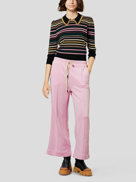 Munthe Cruz Black Striped Sweater, cute striped rib sweater with collar detail. Multi colour stripes adorn this pretty sweater in soft shades of rose, green, plum and mustard on a black background. The fitted shape is ribbed to fit with 3/4 sleeves and pretty scalloped collar. 80% viscose, 20% polyamide Handwash or Dry clean