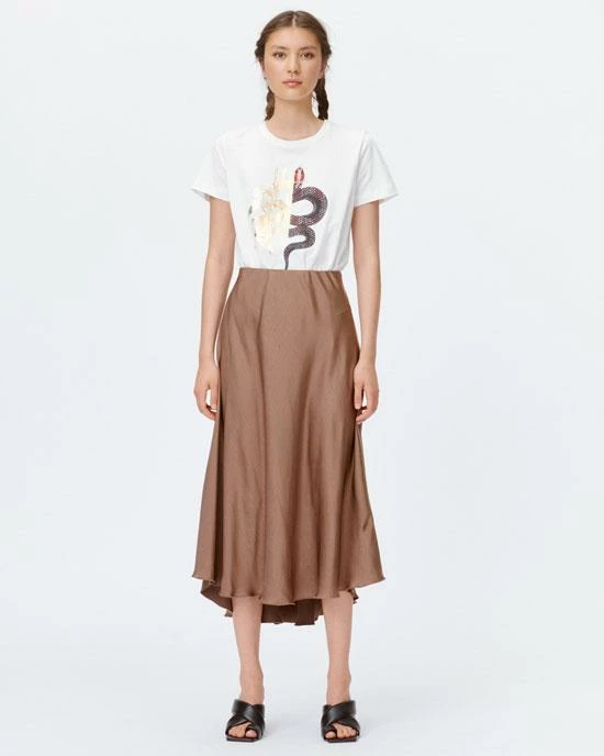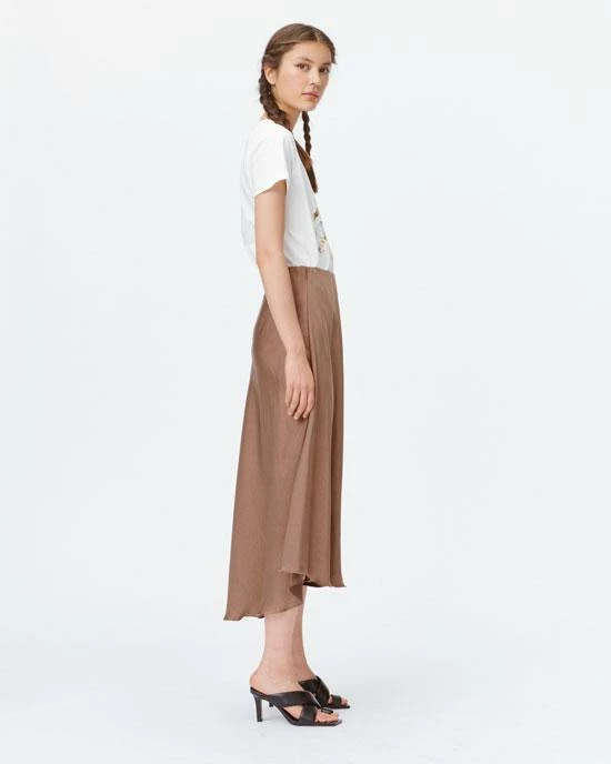 The Lancaster skirt from Munthe is an elegant, calf-length skirt. The soft, brown shade is so pretty, with a floaty feel and elasticated waistband this stylish skirt is really flattering and so easy to wear. It finishes around mid calf-length, and is slightly longer at the back. 100 % polyester Gentle hand wash The model is 177 cm in height and wears a size 36. See more from Munthe here Since Munthe plus Simonsen was established in 1994, the brand has undergone immense growth, winning prestigious awards and worked with internationally recognized brand ambassadors and top-models, and become known for its lavish fashion shows. In 2014, the brand was relaunched by founder and creative director Naja Munthe under the name MUNTHE. Munthes designs are easily recognizable by their artistic, free-spirited, enthusiastic and contrasting characteristics. MUNTHE is synonymous with clothing that is to be worn and loved, and a style which is both relaxed and festive.