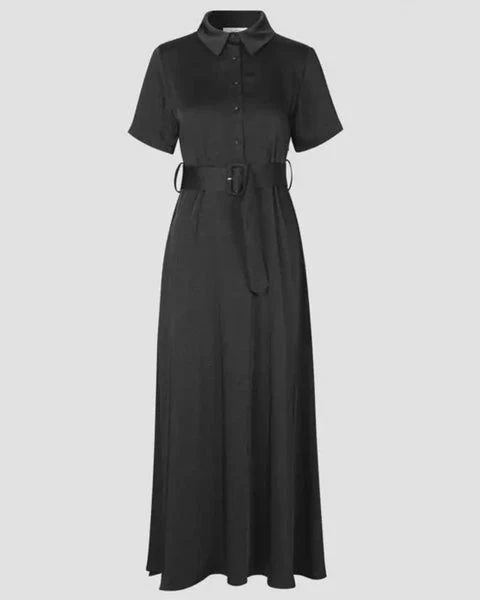A beautiful long dress with short sleeves in a heavy fabric with a lovely sheen to it. It has short sleeves, a buttoned front with five buttons from the waist, a neat collar and a belt with a buckle at the waist. Model 1 is 177cm in height and is wearing Size 36 Model 2 is 177cm in height and is wearing Size 42 100% Polyester Since Munthe plus Simonsen was established in 1994, the brand has undergone immense growth, winning prestigious awards and worked with internationally recognized brand ambassadors and top-models, and become known for its lavish fashion shows. In 2014, the brand was relaunched by founder and creative director Naja Munthe under the name MUNTHE. Munthes designs are easily recognizable by their artistic, free-spirited, enthusiastic and contrasting characteristics. MUNTHE is synonymous with clothing that is to be worn and loved, and a style which is both relaxed and festive.
