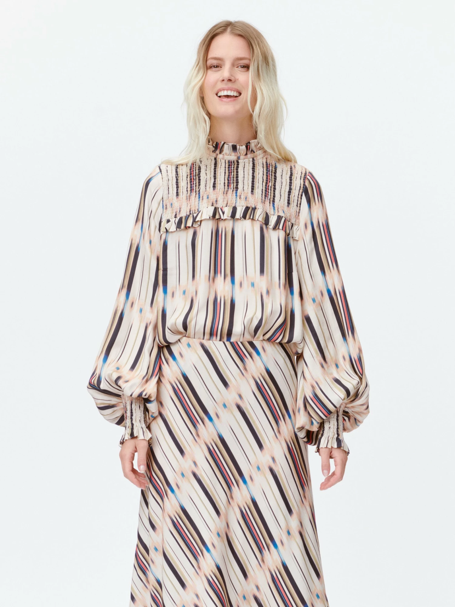 Calf-length skirt in beautiful printed fabric with elastic waistband.