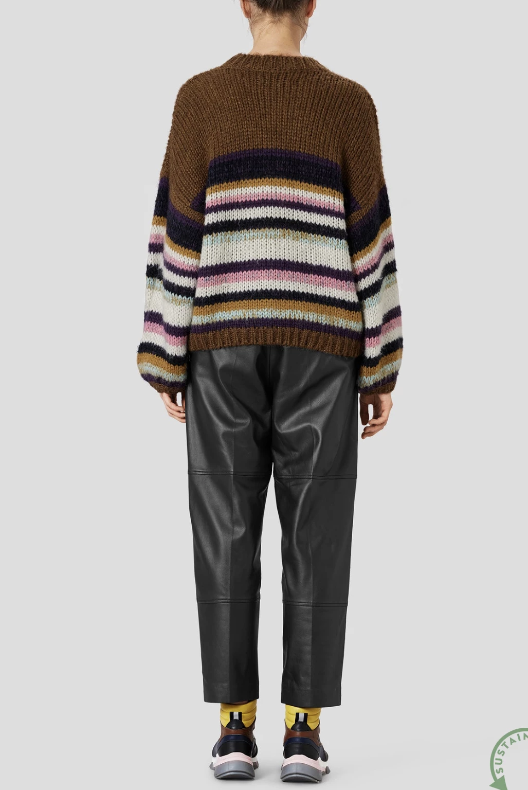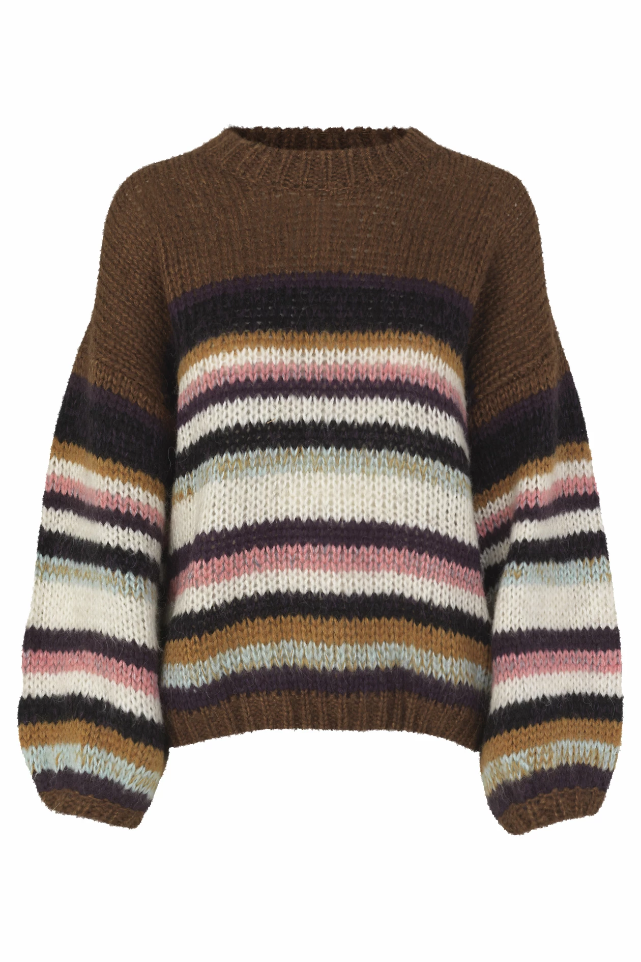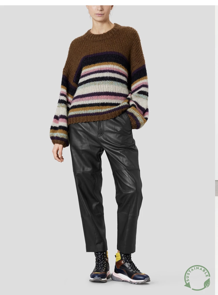 Beautiful, soft knit with a loose fit and long, voluminous sleeves. The knit has dropped shoulders and rib along the round neck, at the end of the sleeves and at the bottom.