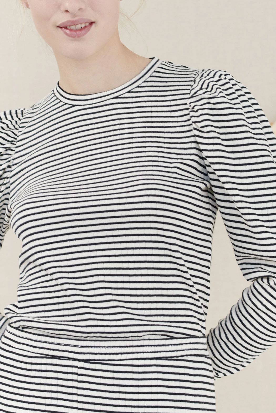 Beautiful, striped blouse in 100% organic cotton. The blouse has a slightly tight fit, round neck.