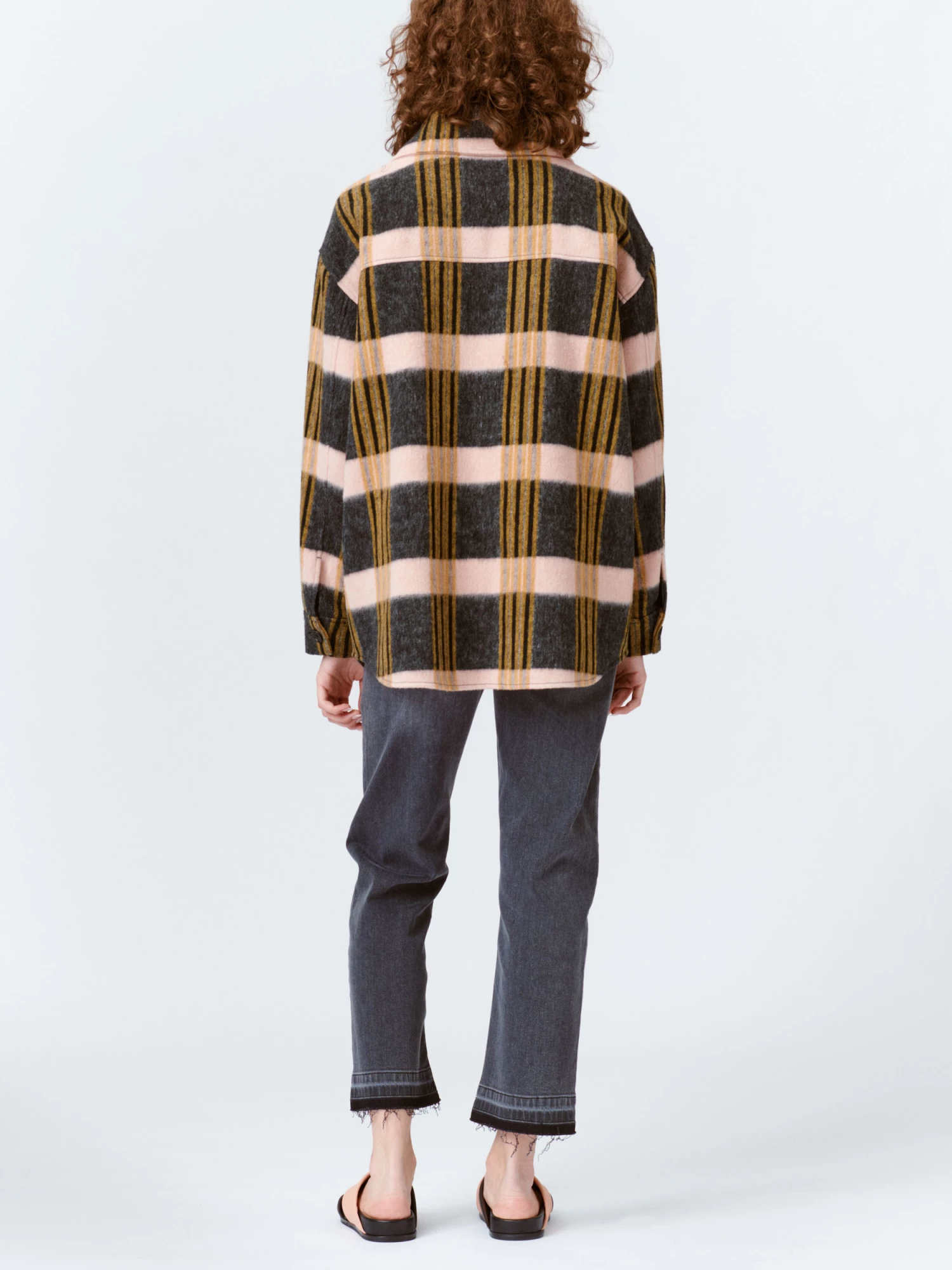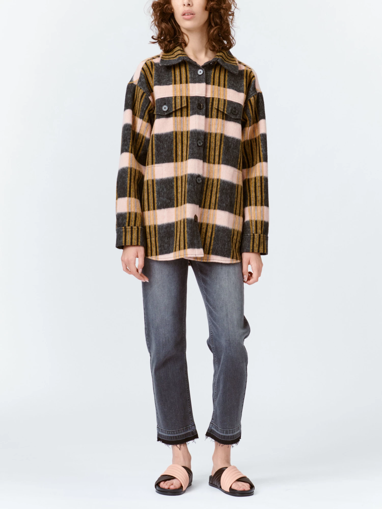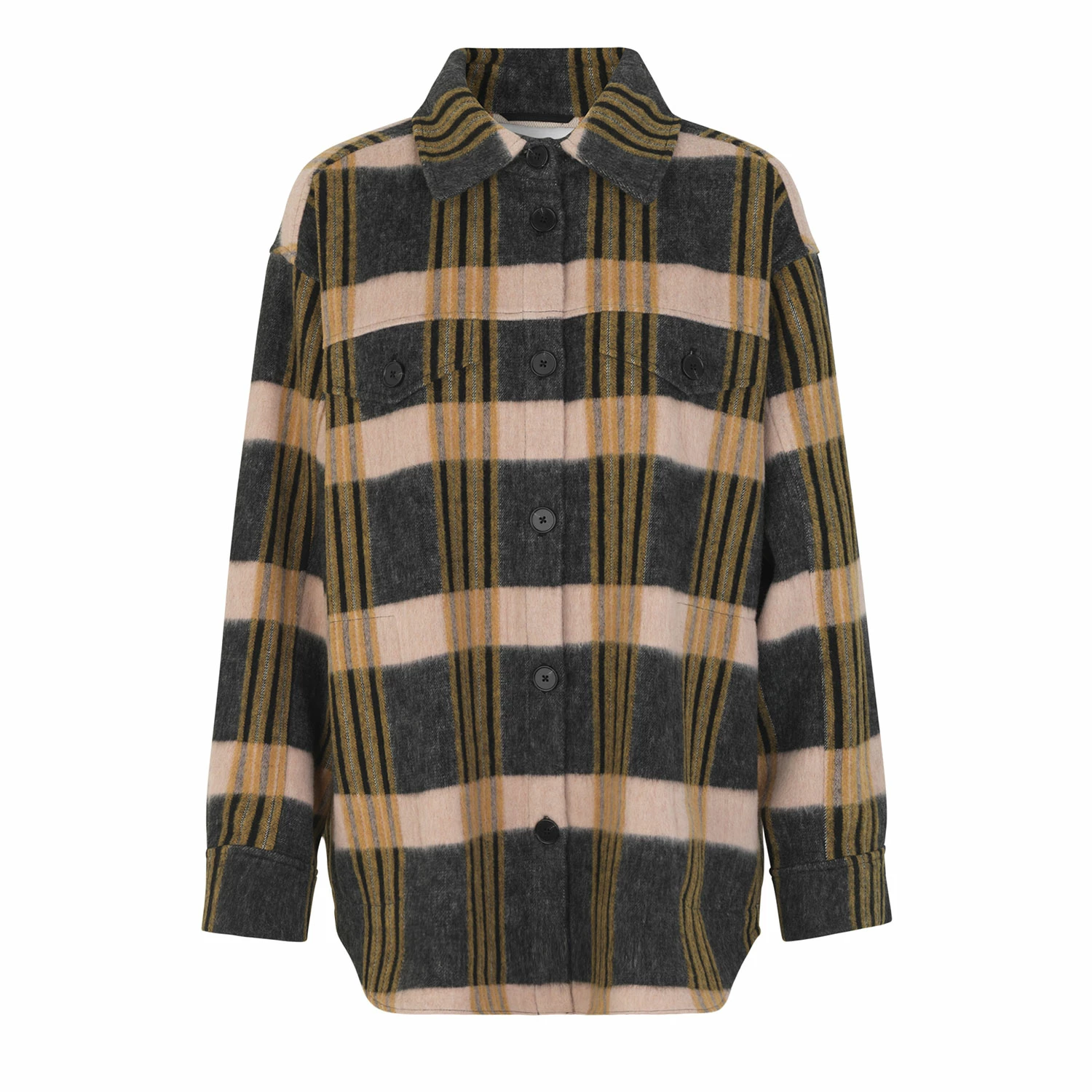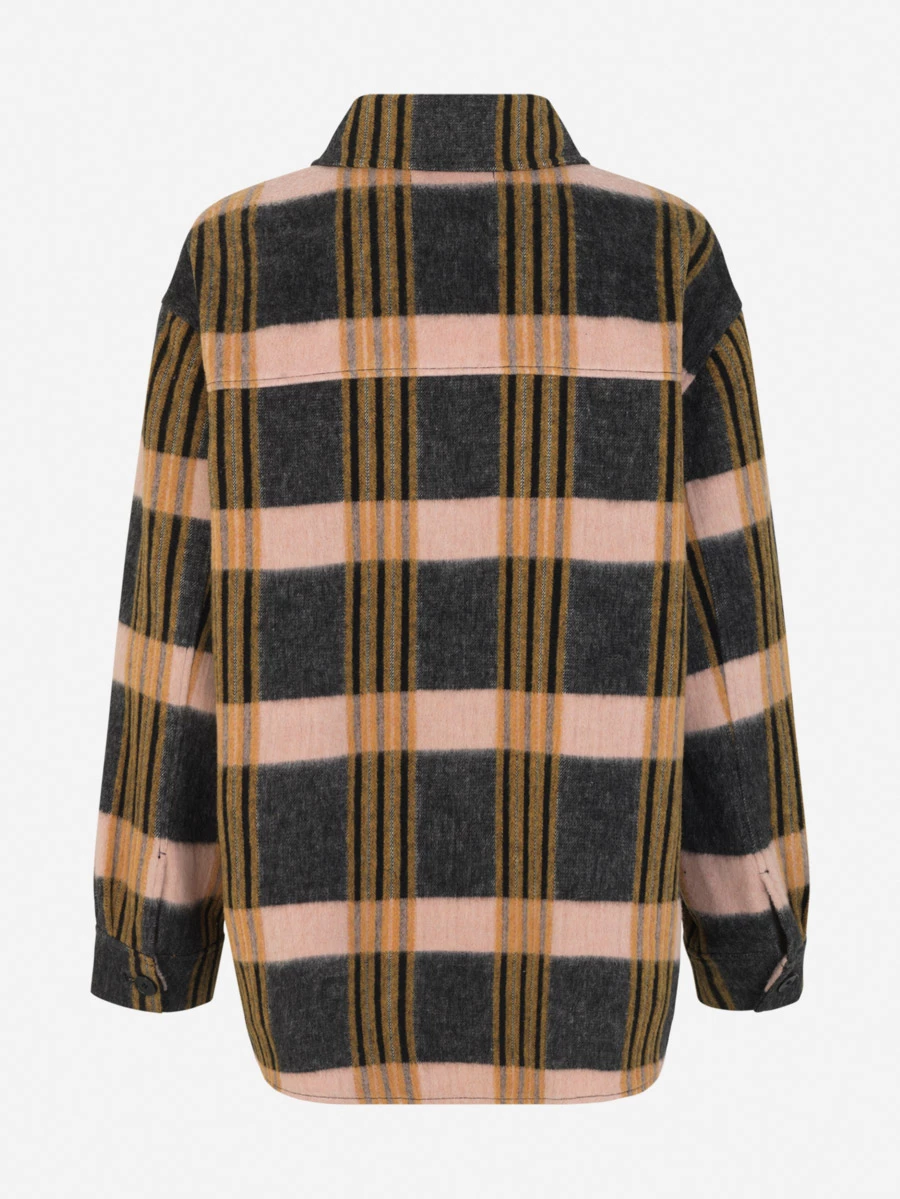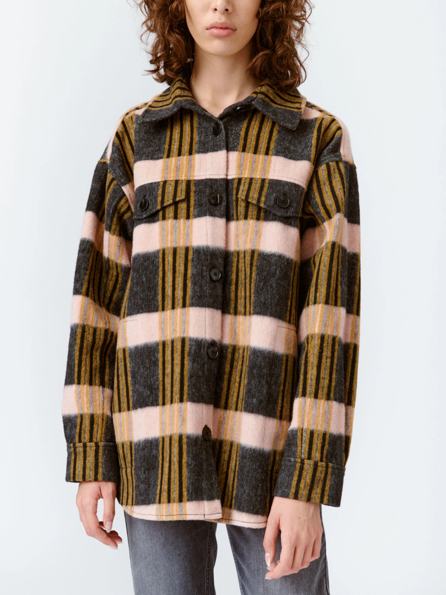 Shirt jacket in soft wool blend. The Packera outerwear has a classic collar and front buttons, side pockets and decorative pockets at the chest. Regular fit, dropped shoulders and long sleeves with button up cuff. The jacket is without lining and is available in the color rose.