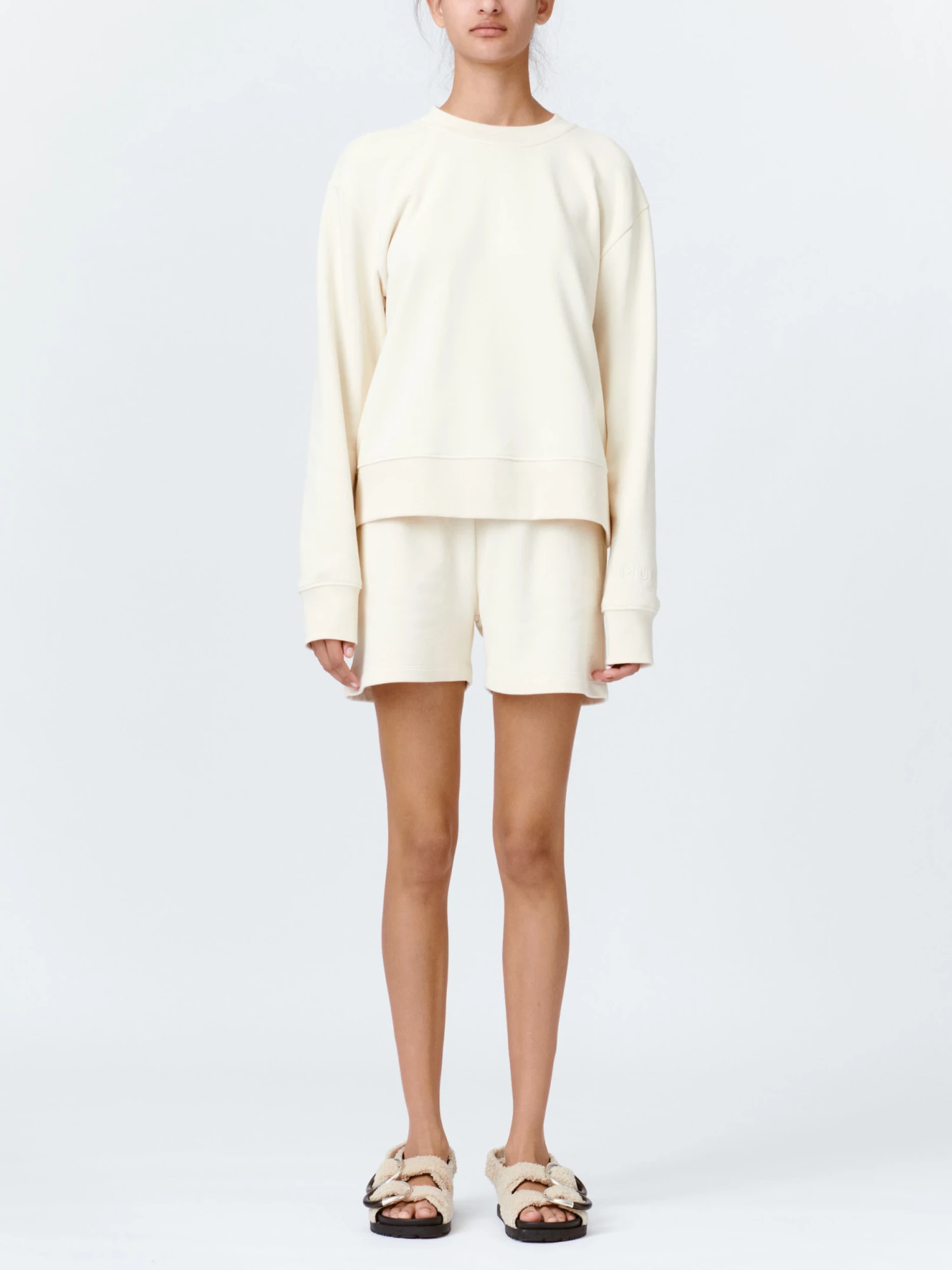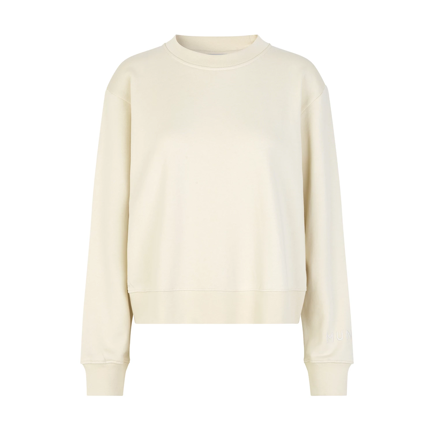 Powell Top, a soft sweatshirt in 100% sustainable cotton. The sweatshirt has a regular fit and a MUNTHE embroidery on the left sleeve. Rib details in the round neck, at the end of the long sleeves and at the bottom.