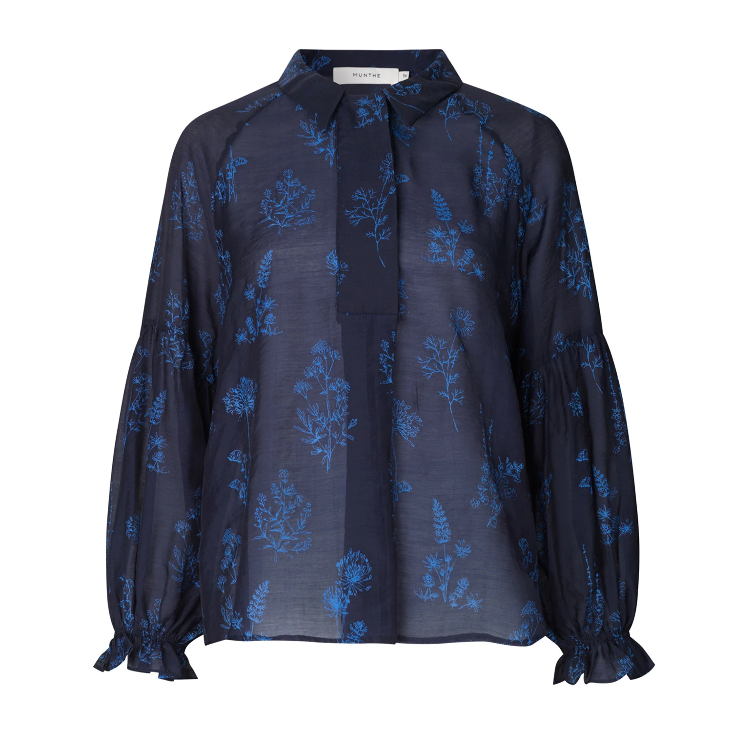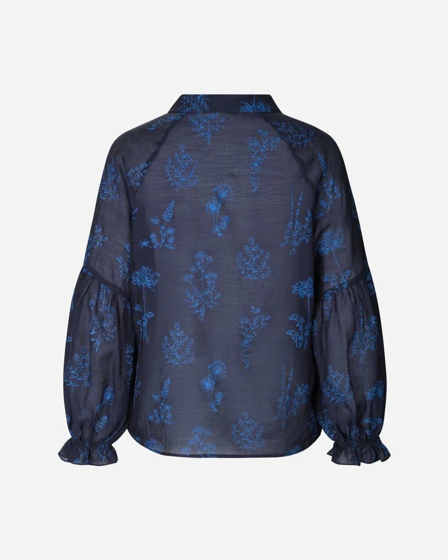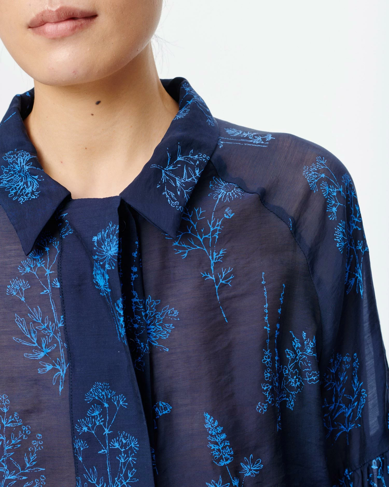 Short tunica shirt in a soft TENCEL lyocell, a great alternative to the normal viscose and created from some of the most sustainable fibers. The shirt has a small pointed collar and hidden buttons in the front. Straight fit with a soft drape and long balloon sleeves with a small hidden elastic band by the wrist.