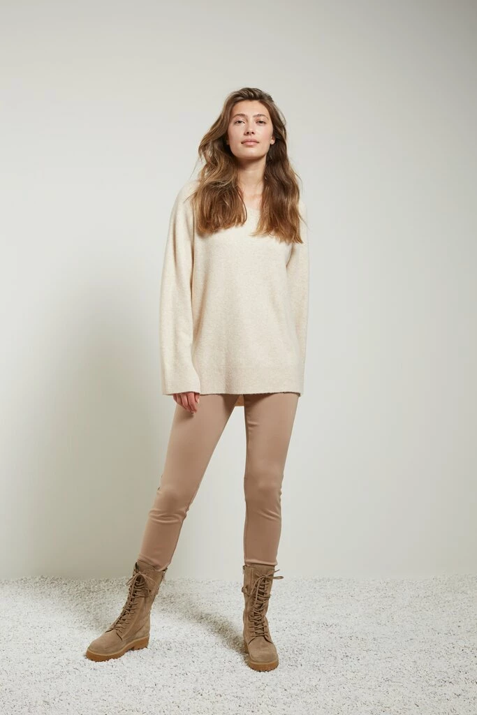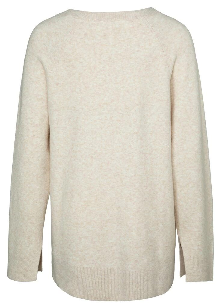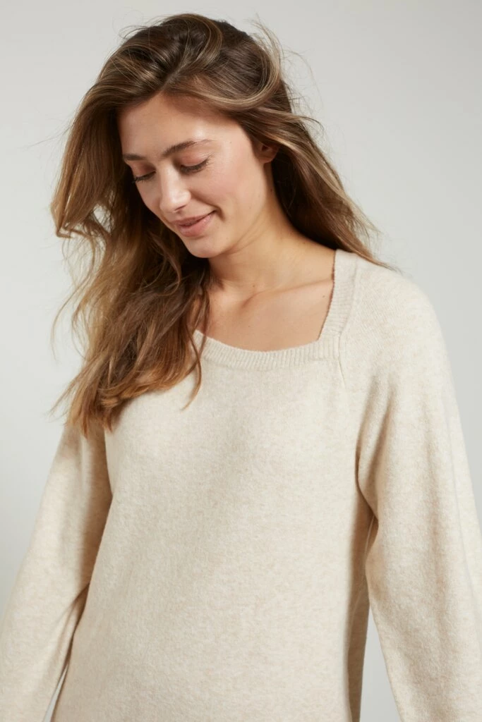 This pretty sweater in a beige melange is a great transitional piece into Spring, to pair with white or light denim and a short jacket.