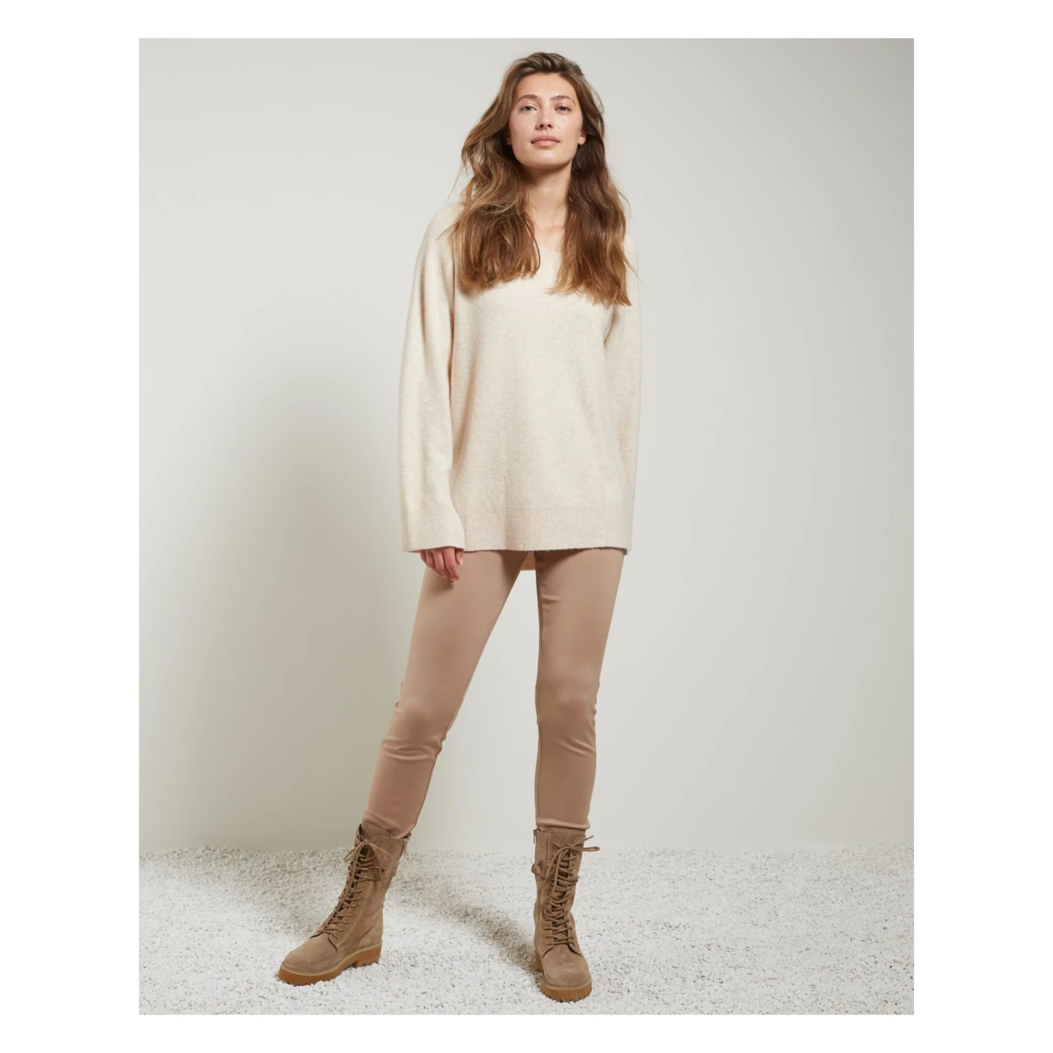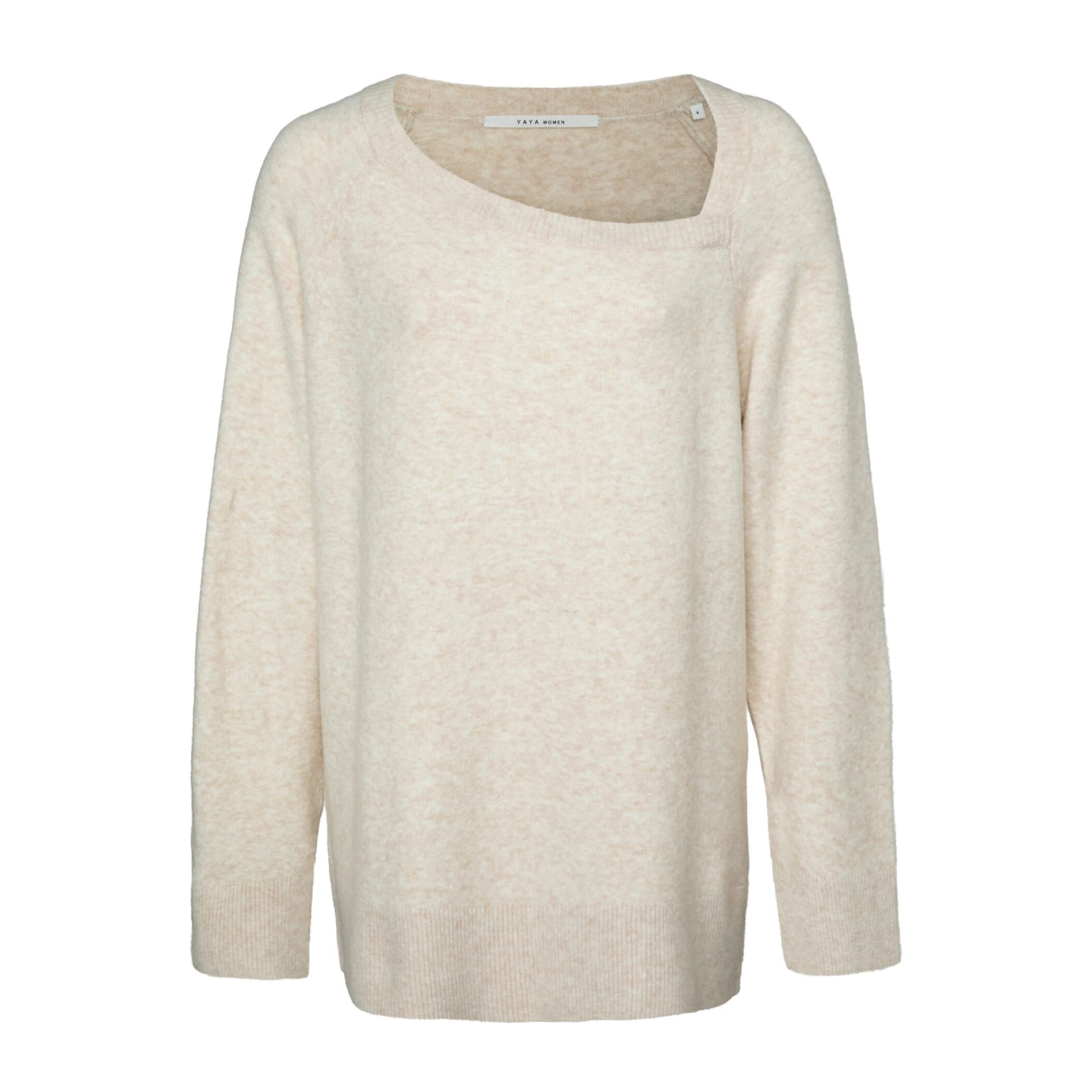 A soft and cosy sweater to keep you warm as you wait for the Spring sunshine to arrive. The asymmetric neckline adds a contemporary twist to this classical design. In a gentle beige melange, the colour will sit nicely with your spring wardrobe. A typical stylish yet practical Yaya piece.