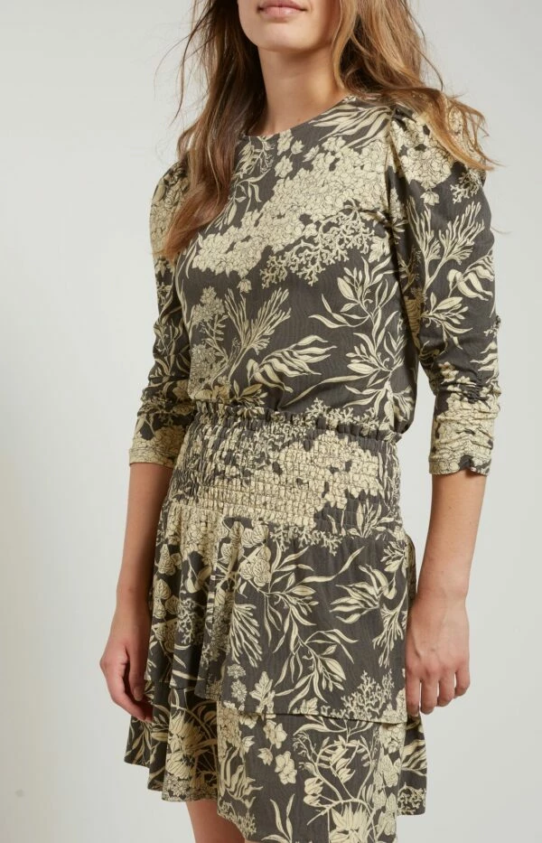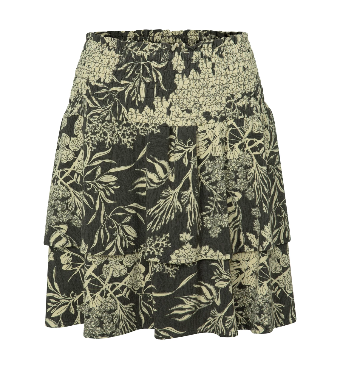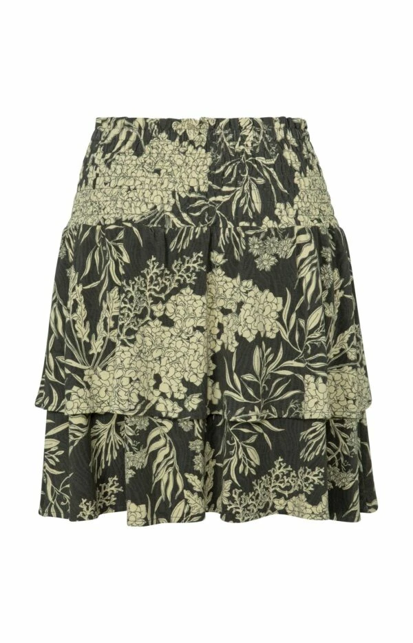 Mini skirt crafted from viscose with a smocked waistband and a gorgeous botanical print. The soft inner skirt makes this item very pleasant to wear. Perfect to combine with the matching Yaya blouse or a plain top for an ultimate feminine look.