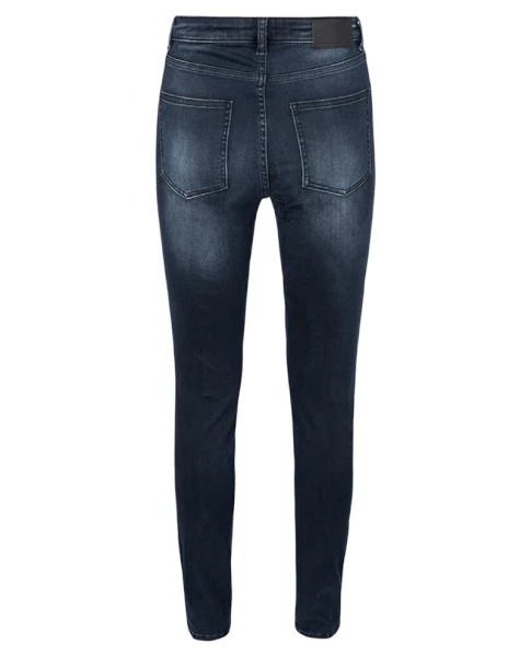 Yaya Dark Blue Denim Jeans, a dark indigo blue pair of skinny fit jeans with a button and zip fastening and the classic 5 pocket design. Skinny fit High waist Indigo blue Faded whiskering 88% Cotton, 8% Polyester & 4% Elastane Machine wash at 30 Yaya jeans have added elastane so after a couple of wears they will stretch, it is worth sizing down so avoid any sagging in the fabric and to ensure a perfect fit.