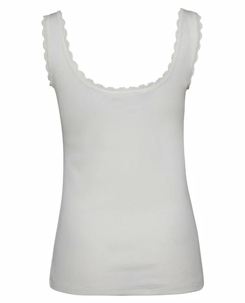 Yaya Egret Ribbed Vest, an off-white round neck vest. With ribbed detail and scallop edge, this is an ideal layering piece under blazers, jumpers and knits. 96% Cotton and 4% Elastane