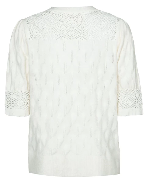 Yaya Embroidered Egret Cream knit, a cream knitted sweater with short sleeves and a round neck. Finished with cream crochet style embroidery across the chest and cuffs this soft pullover has a slightly nude tone making it both warm and cosy in colour and texture. 50% Polyamide, 41% Acrylic, 6% Elastane & 3% Wool Hand wash cold and dry flat XS – UK8, S – UK10, M – UK12, L – UK14