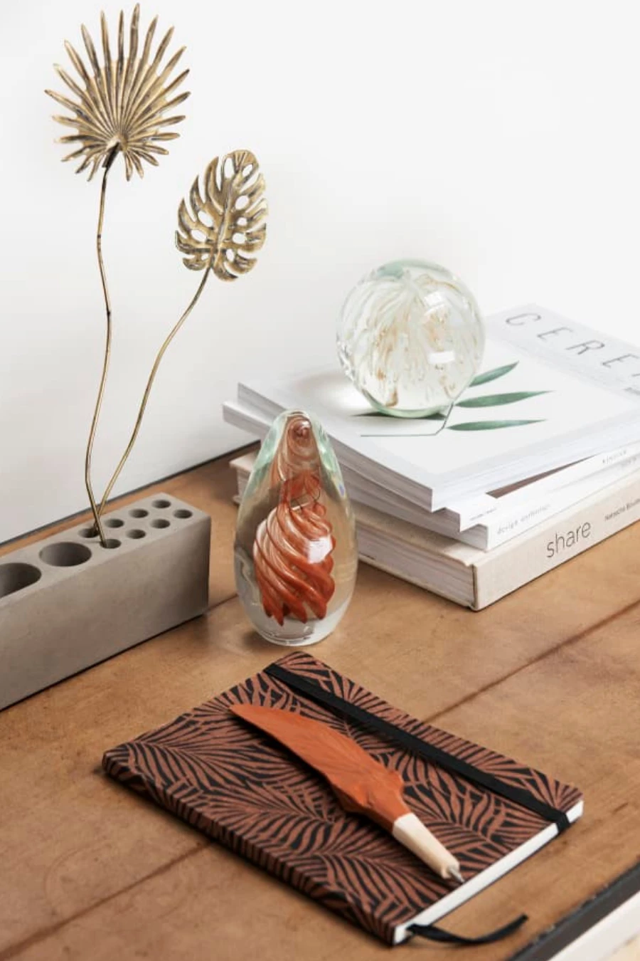 Glass paperweight Great for keeping all your papers together Use for display on your coffee table or shelf Material: glass Size: 7,5cm x 14,5cm