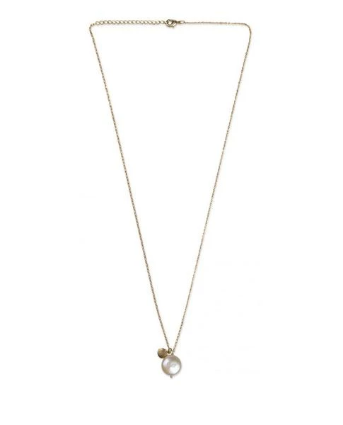 Yaya Gold Pearl Shell Necklace, a fine gold chain necklace with an imitation shell pendant and a small golden glam shell charm. Gold Plated Brass 27cm drop