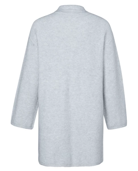 Yaya Grey Tunic Sweater, a ribbed grey pullover jumper with long sleeves and a silver metal half zip. Long in the body this mid length knit has long wide sleeves and a loose straight fit. Thigh length. 37% Cotton. 29% Acrylic, 26% Polyester, 5% Wool & 3% Elastane Hand wash Size down if between sizes as this is a loose fitting jumper XS – UK8, S – UK10, M – UK12, L – UK14