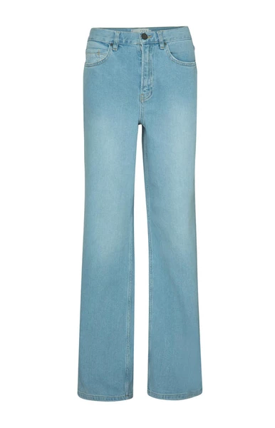 Flared denim with high waist and side and back pockets in length 34. Color: Blue Denim Item code: 1201221-212