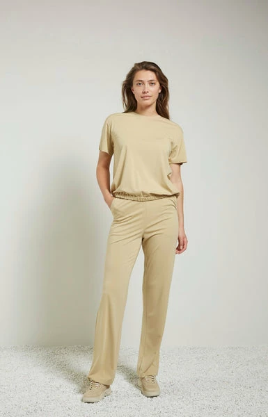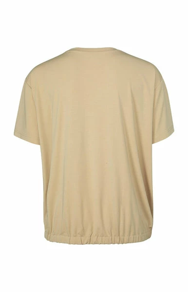 Elegant jersey sweater with short sleeves and a boxy fit in a creamy beige shade. Perfect to combine with chinos or trousers for a comfortable, stylish look. The model in the photo is 180 cm and wears a size S.