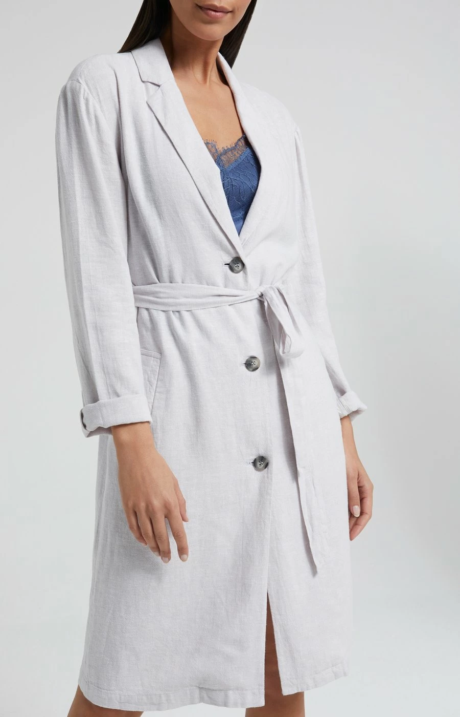 The Linen blend lightweight jacket from YAYA features a light fabric, loose fit and a button closure. The jacket is designed with pockets, a split at the back and a belt.