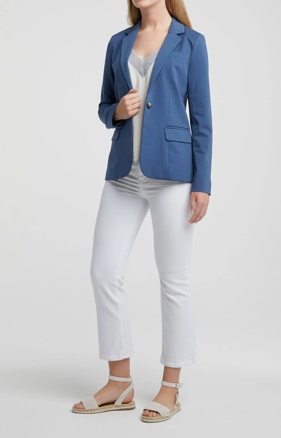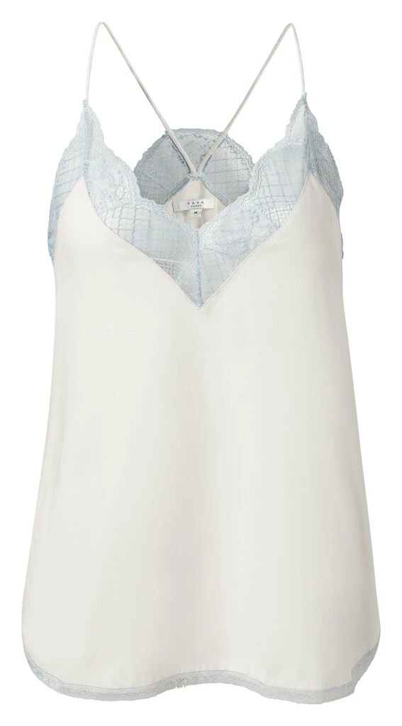 The modal strap singlet top with lace from YAYA features a loose fit, V-neck and straps. The top is designed with lace and racer back and has a blue lace trimming for a contrast effect.