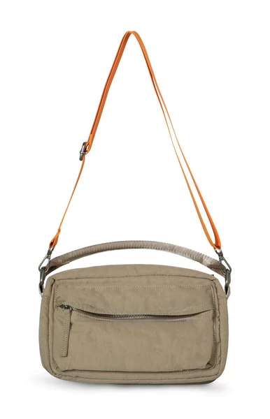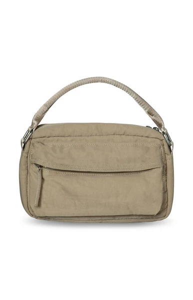 his nylon cross body bag has a main compartment with two zippers and a side pocket. The second compartmen on the front is finished off with a zipper as well. The bag has a removable and adjustable shoulder strap and a handle. The adjustable shoulder strap can be adjusted between 65 cm and 120 cm. The bag has a height of 17 cm and a width of 28 cm.