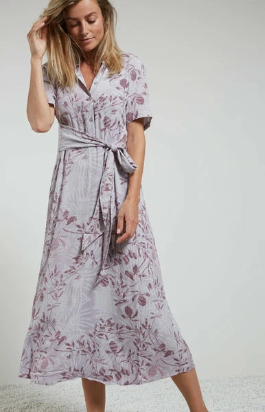 The ultimate spring and summer dress featuring a botanical print, short sleeve and a comfortable, flowy silhouette. Our model in the picture is 177cm and is wearing a size 36. Color: Raindrops Purple Dessin Item code: 1801459-214