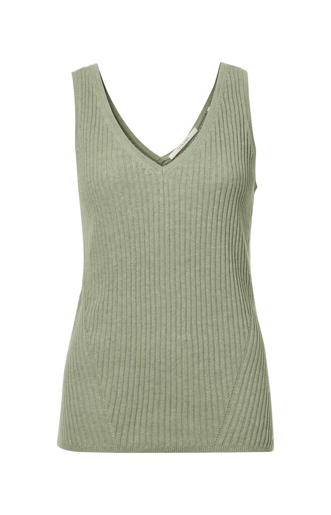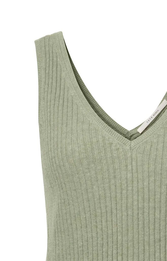 This rib stitch tank top from YAYA is a tank top with V-neck and rib stitch knitted in two contrasting lines which provides a versatile touch to your casual looks.