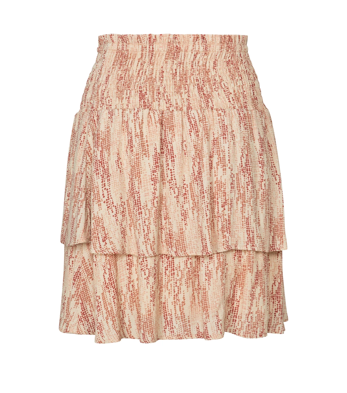 Beautiful flowy mini skirt made from viscose with unique print and soft touch inner skirt. The smocked waist and narrow elastic at the waist give this skirt an elegance finish. Pair with Yaya top and Victoria trainers for a cool casual look or with boots for a feminine and edgy outfit.