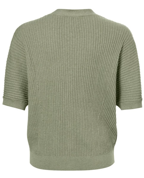 Yaya Seagrass Green Cardigan, a pale khaki green knitted cardigan with short sleeves and a v neck. Loose fitting with dropped shoulders the Seagrass green cardigan fastens with tonal green buttons down the front. 88% Cotton & 12% Linen Hand wash cool and dry flat Oversized, size down if between sizes XS – UK8, S – UK10, M – UK12, L – UK14