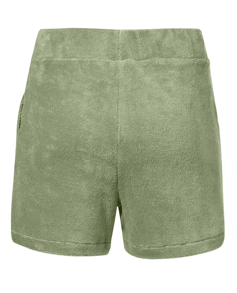 Yaya Seagrass Green Shorts, a soft towelling pair of khaki green shorts with pockets and a stretchy waistband. Designed with a mock fly at the front these short casual shorts can be worn with the matching towelling sweatshirt or alone with a simple tee on warm Summer days. 76% Cotton & 24% Polyester Machine wash at 30 XS – UK8, S – UK10, M – UK12, L – UK14