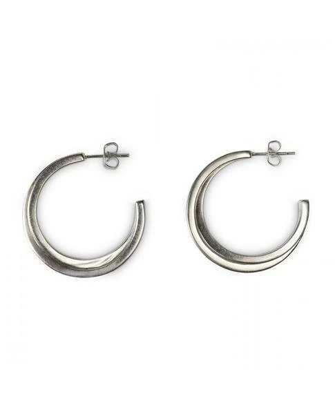 Yaya Silver Double Hoop Earrings, an entwined set of matt silver hoop earrings. Also available in gold these small metallic double hoop earrings have stud fastenings. Silver Plated Brass 3cm