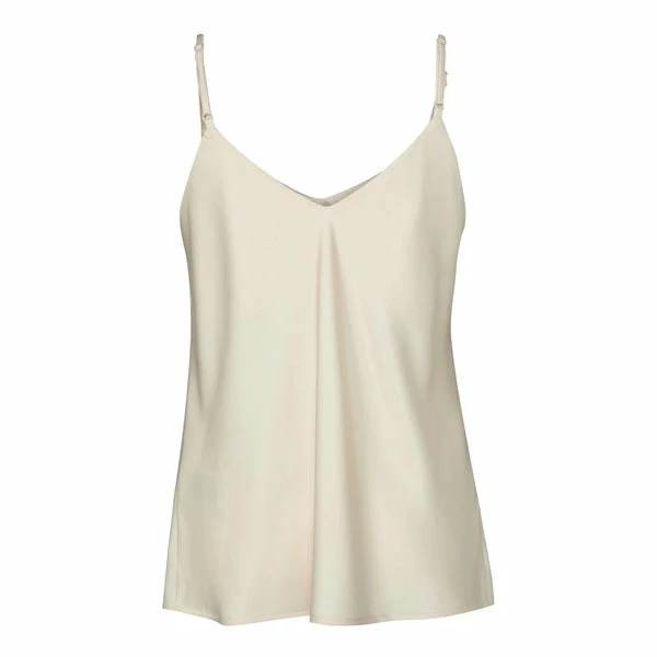 YAYA Strappy Top Pale Sand Viscose blend fabric Adjustable straps Lace detail at front A summer essential, this strappy top in a neutral shade is easy to combine under a blazer or under a low cut dress for an alternative look. Available in 2 natural colour options. This style has adjustable thin straps. Care Instructions: Machine washable Fabric Composition: 71% viscose, 29% polyester