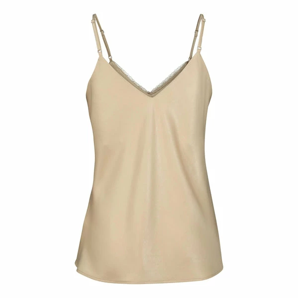 YAYA Strappy Top Warm Sand Viscose blend fabric Adjustable straps Lace detail at front A summer essential, this strappy top in a neutral shade is easy to combine under a blazer or under a low cut dress for an alternative look. Available in 2 natural colour options. This style has adjustable thin straps. Care Instructions: Machine washable Fabric Composition: 71% viscose, 29% polyester