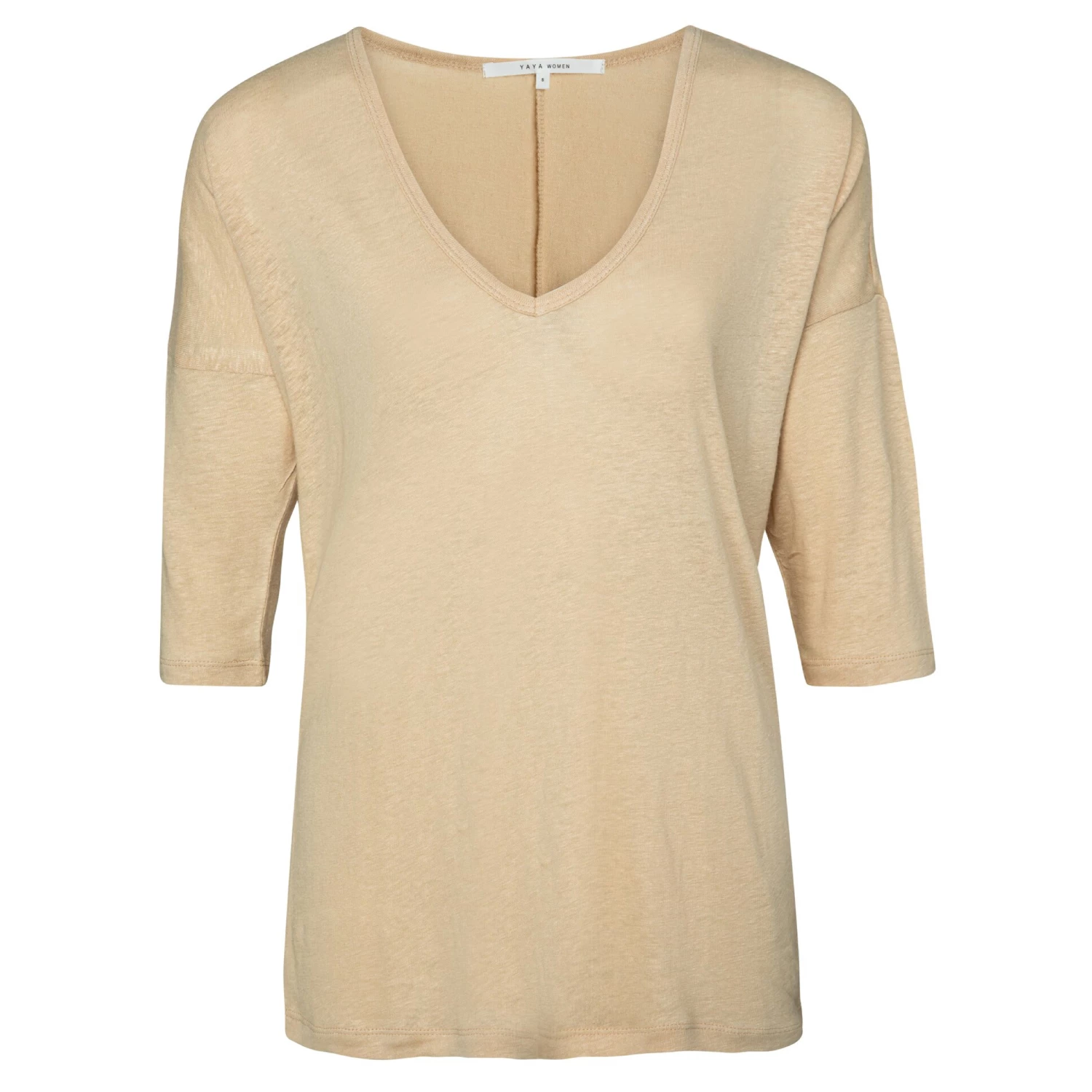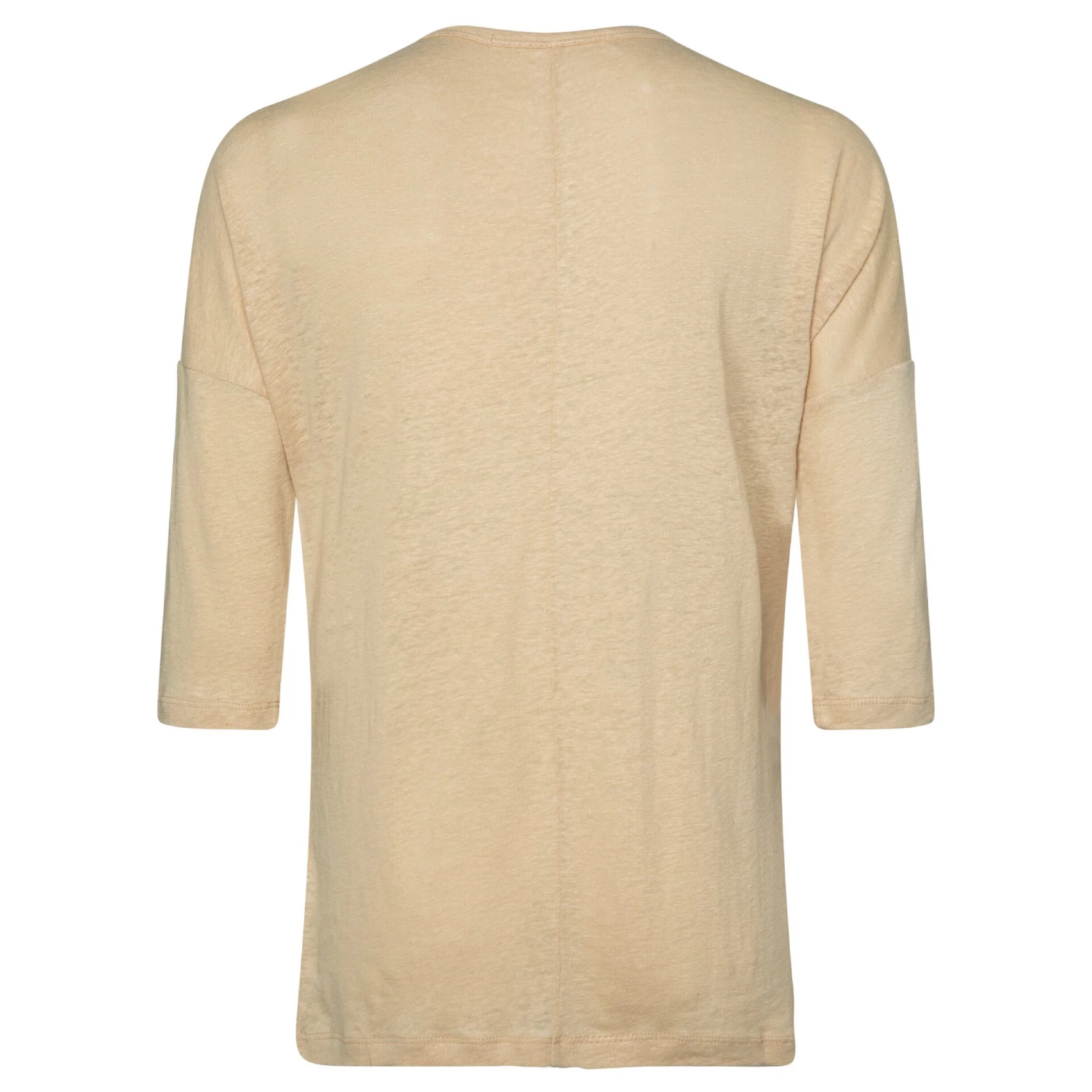 This top with V-neck is a perfect essential to add to your wardrobe. The fine linen and viscose knit offers a soft and cool fabric for the summer. Combine with a jacket or a comfortable cardigan for some layered warmth. The model in the photo is 180 cm and is wearing a size 36.