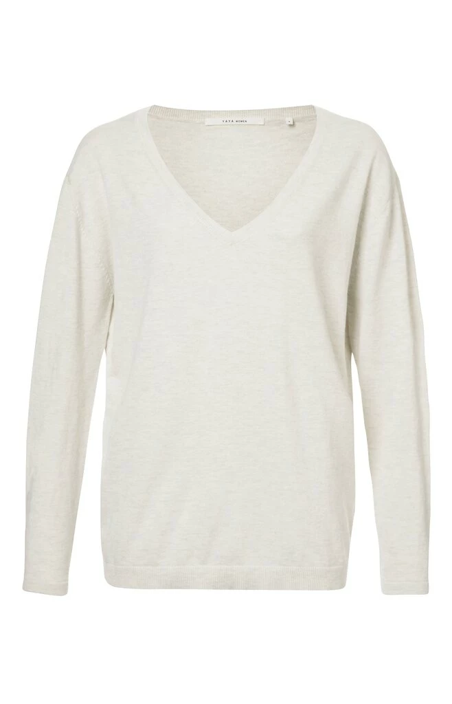 The V neck sweater in light grey melange from YAYA is perfect for your everyday wardrobe, featuring a V-neck and long sleeves.