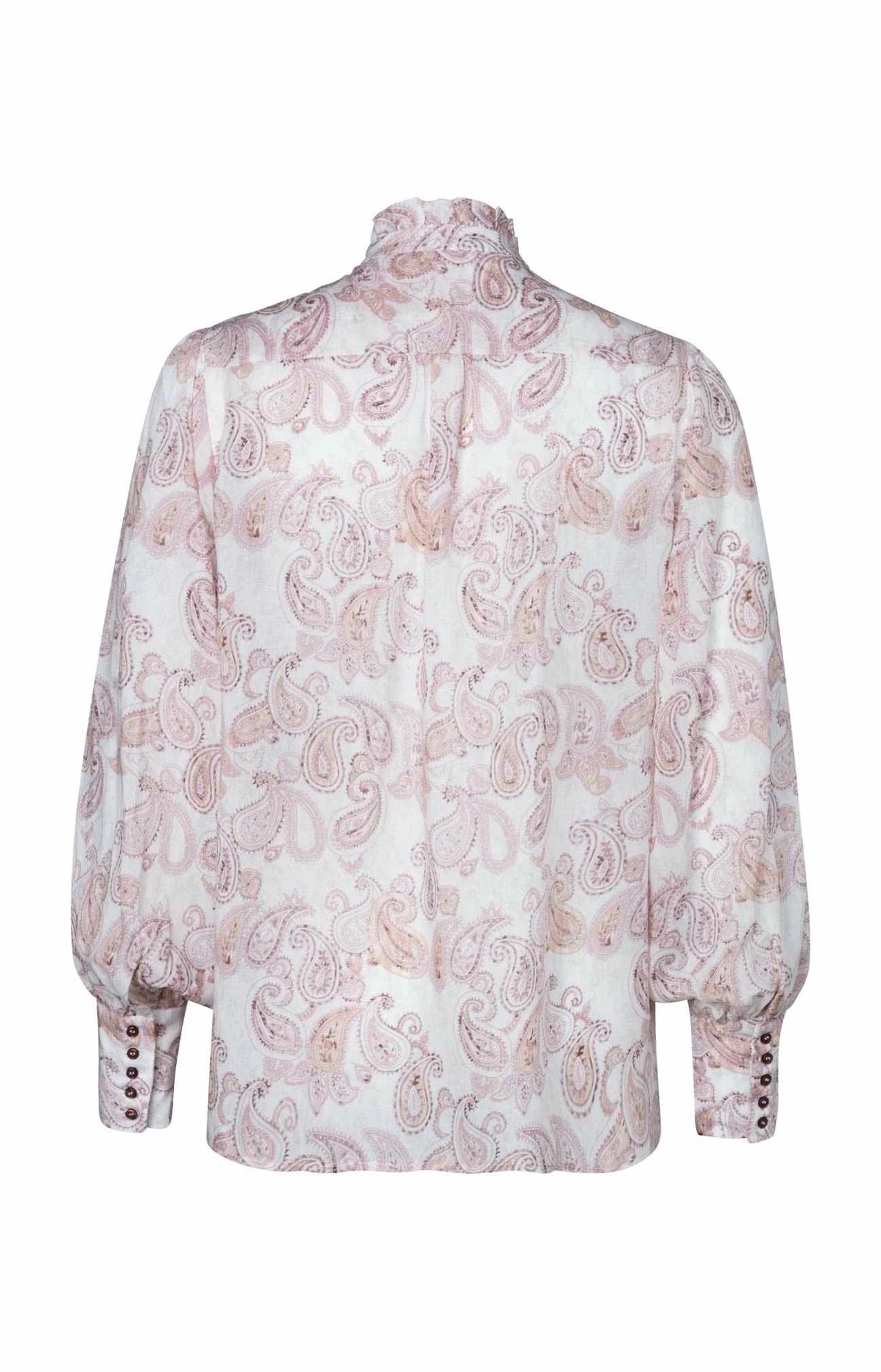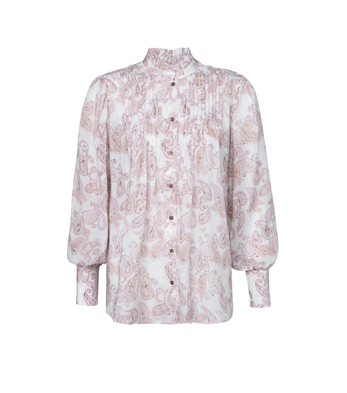 Printed volume sleeve top in white by yaya. Beautiful printed blouse that is easy to wear and style. It’s perfect for the new coming spring season to pair with a jacket, layered with a knit and a pair of your favourite trousers. Featuring a high neck with ruffles, button closure and long balloon sleeves with puff details. Features: composition: 100% lyocell. Paisley print throughout. Fit: relaxed. High neck with ruffles. Long balloon sleeves with puff details.